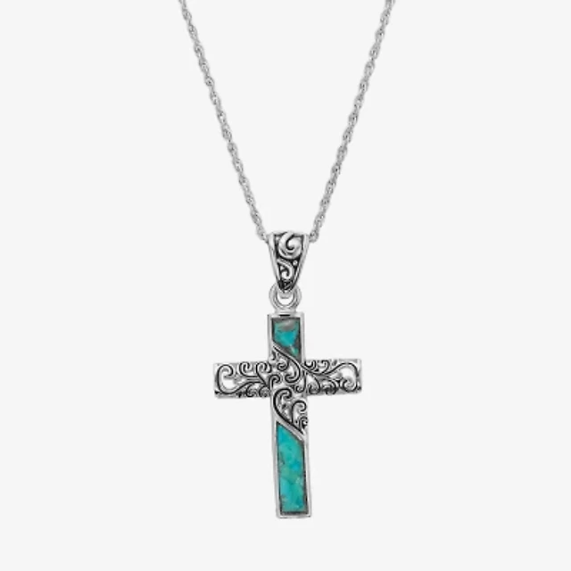 Diamond Blossom (G-H / Si2-I1) Womens 1/10 CT. T.W. Lab Grown White Sterling Silver Cross 18 Inch Pendant Necklace