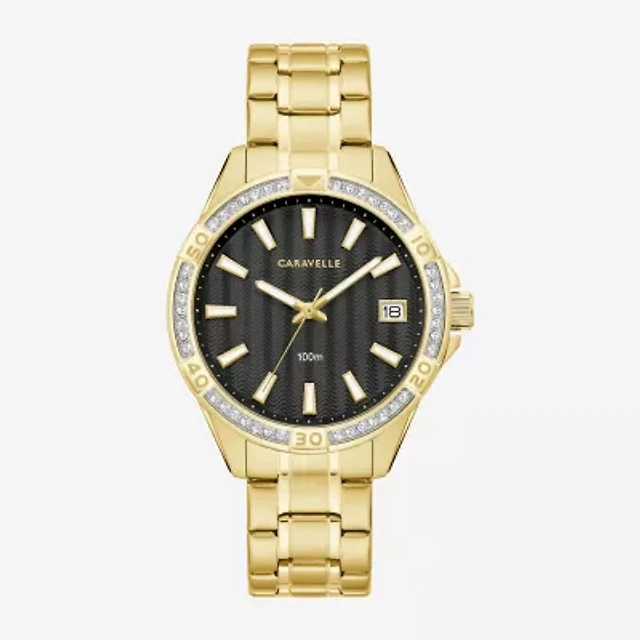 Caravelle Designed By Bulova Aqualuxx Womens Crystal Accent Gold Tone Stainless Steel Bracelet Watch 44m116