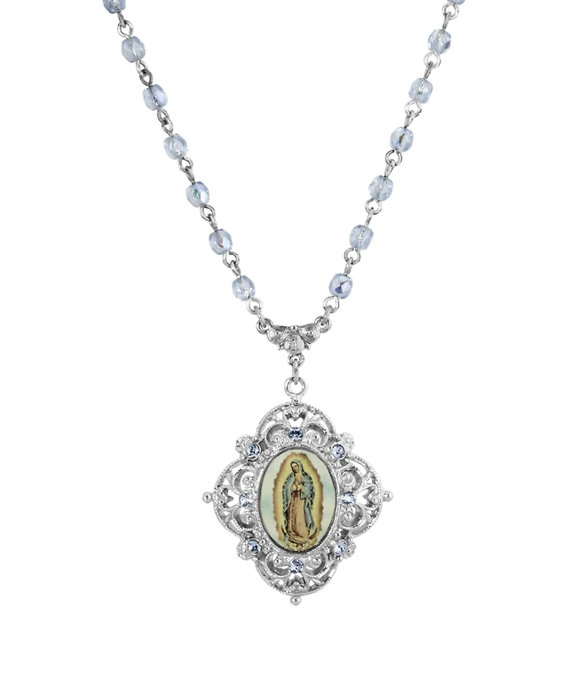 2028 Women's Pewter Rectangle Sapphire Blue Color Crystal Cross Beaded Necklace