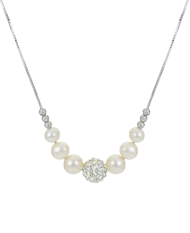 Cultured Freshwater Pearl (8-1/2mm) & White Topaz (1 ct. t.w.) Flower 18" Pendant Necklace in Gold-Tone Plated Sterling Silver