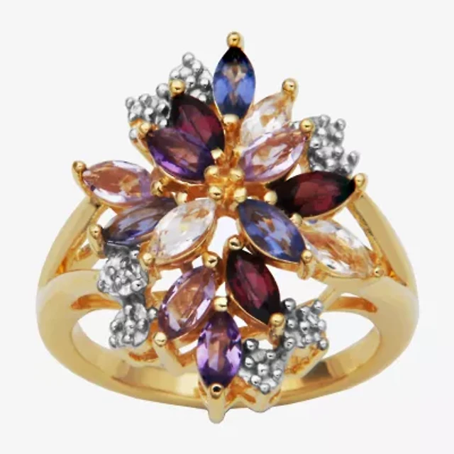 Womens Diamond Accent Gemstone Sterling Silver Heart Cocktail Ring