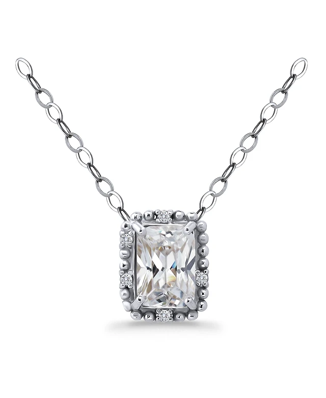 Suzy Levian Sterling Silver Cubic Zirconia Emerald Cut Halo Pendant Necklace