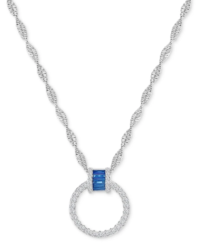 Suzy Levian Sterling Silver Cubic Zirconia Alternating Round & Baguette Open Circle Pendant Necklace