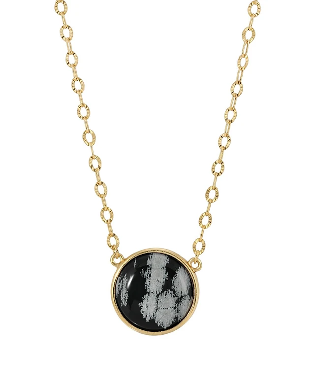 2028 Gold-Tone Snow Flake Obsidian Necklace