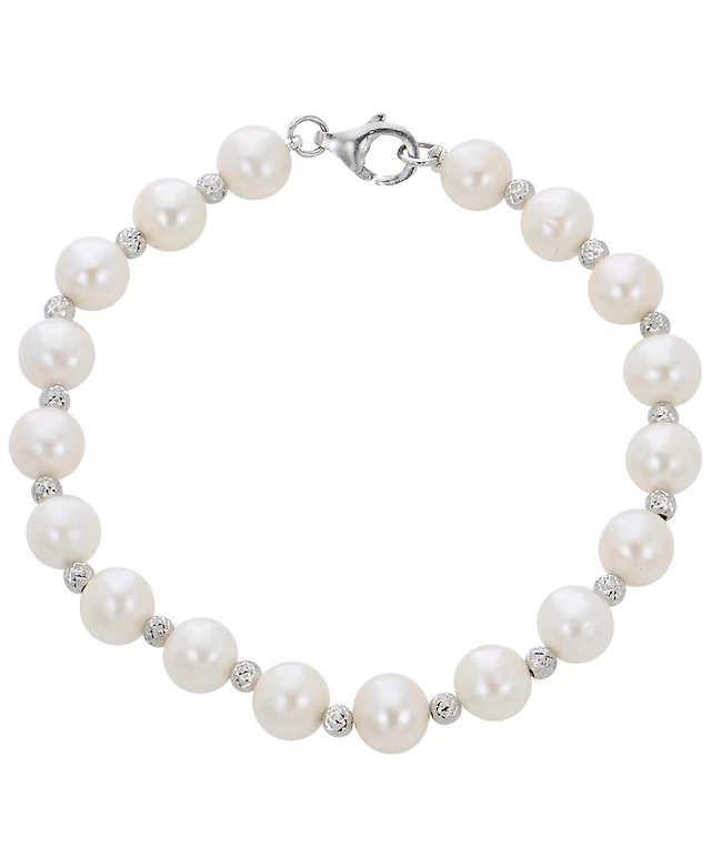 3mm Sterling Silver Bead and Bar with Freshwater Pearls Stretch Bracelet