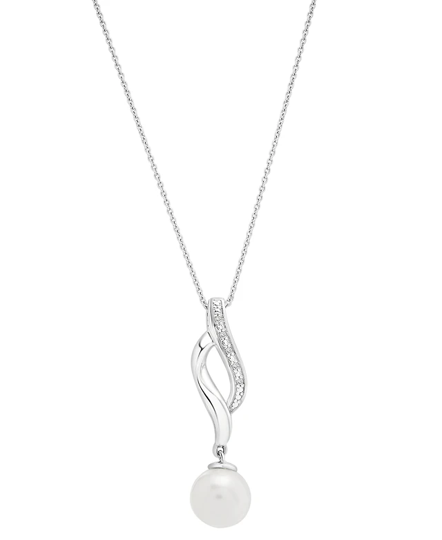 Cultured Freshwater Pearl (8mm) & Diamond Accent Swirl 18" Pendant Necklace in Sterling Silver