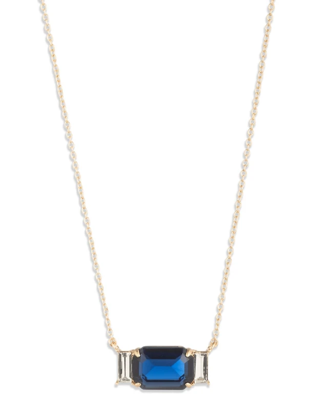 Jessica Simpson Green Gem Drop Charm Necklace in Gold-Tone Chain