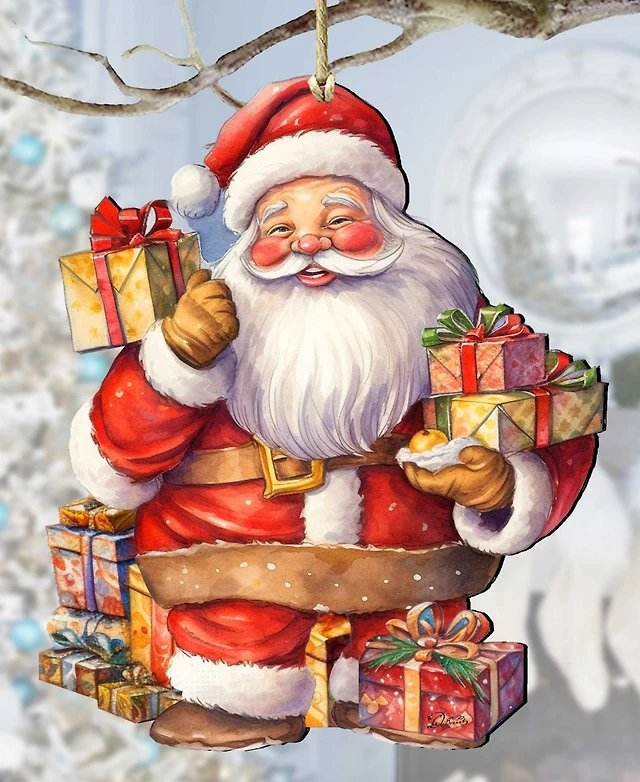 Designocracy Merry Delivery Santa with Gifts Christmas Wooden Ornaments G. DeBrekht