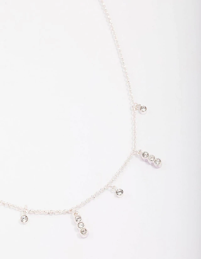 Silver Cubic Zirconia Statement Layered Chain Necklace