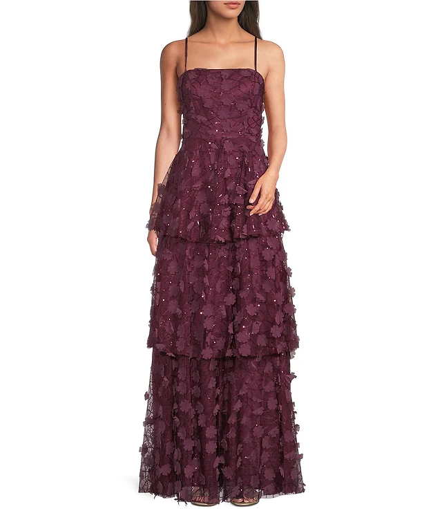 Eliza J Cowl Neck Velvet Embellished Gown