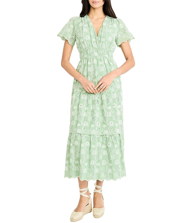 Kensie Halter Dotted Embroidered A-Line Midi Dress