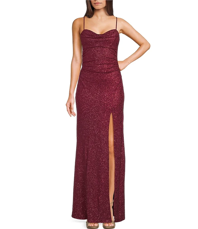 Alex Marie Annalee Satin Cowl Neck Sleeveless Midi Dress