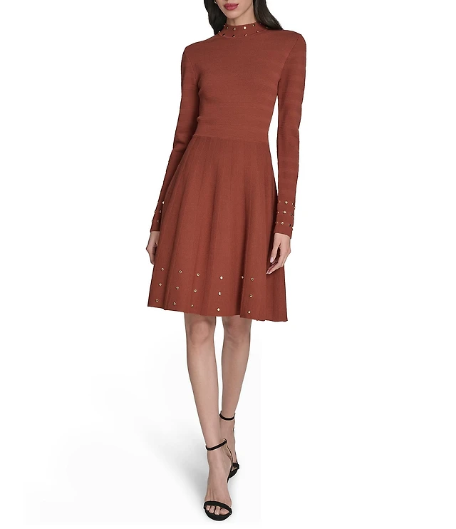 Midnight Doll Long Sleeve Glitter Dot Double Hem Fit & Flare Dress