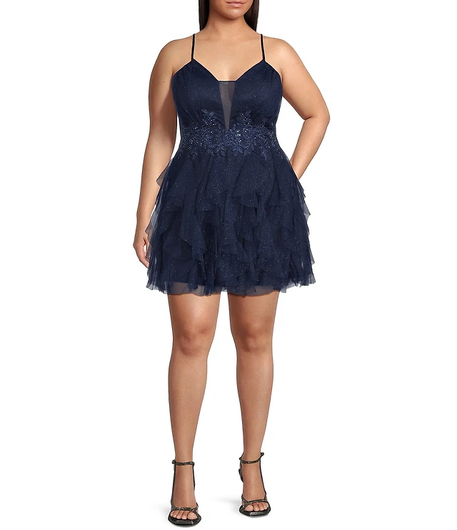 Allison & Kelly Glitter Mesh Ruffle Midi Dress