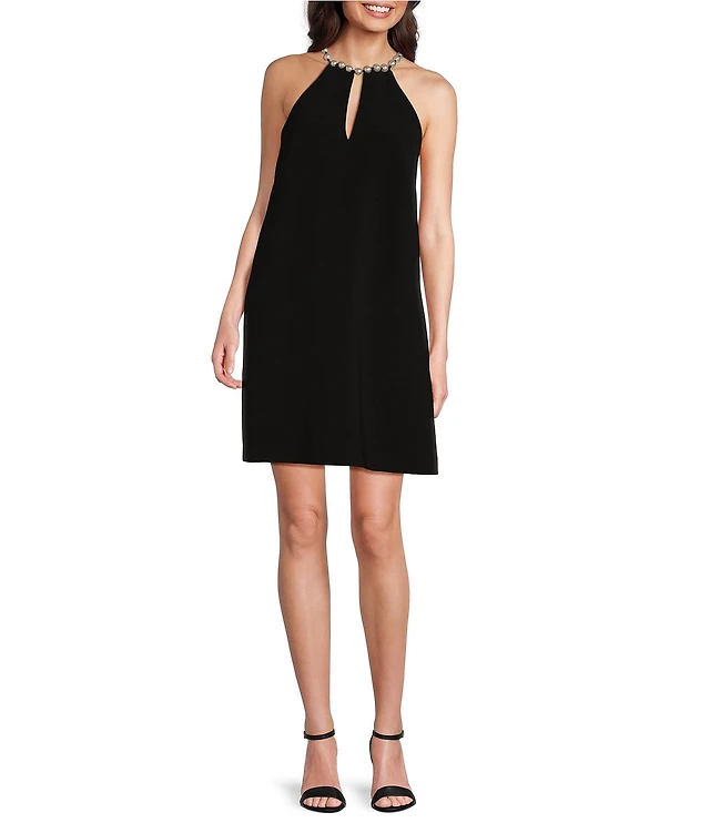 Morgan & Co. Clustered Beaded Sequin Halter Tie Neck Dress