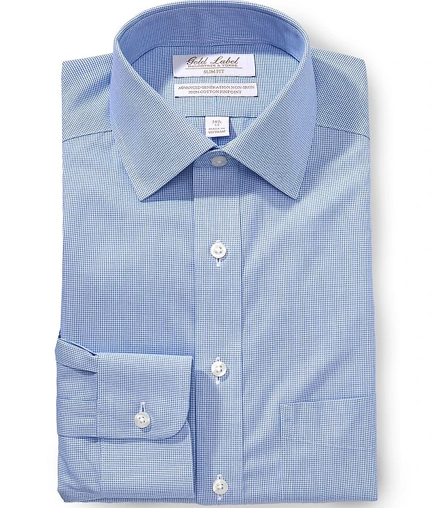 Hugo Boss Slim Fit Performance Spread Collar Pin Dot Print Dress Shirt