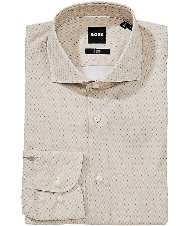 Hugo Boss Slim Fit Spread Collar Geometric Pattern Dress Shirt
