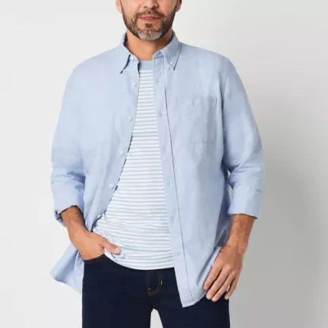 St. John's Bay Performance Oxford Mens Easy-on + Easy-off Seated Wear Long Sleeve Classic Fit Button-Down Shirt