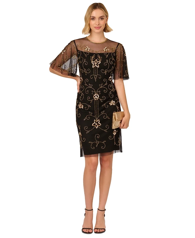 Adrianna Papell Women's Beaded Illusion-Neck Dress