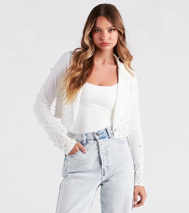 Pearly Perfect Crepe Crop Blazer