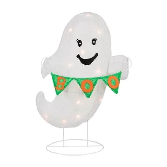 Glitzhome 66"H Halloween Oversized Lighted Fabric Ghost Sitter Halloween Porch Sign
