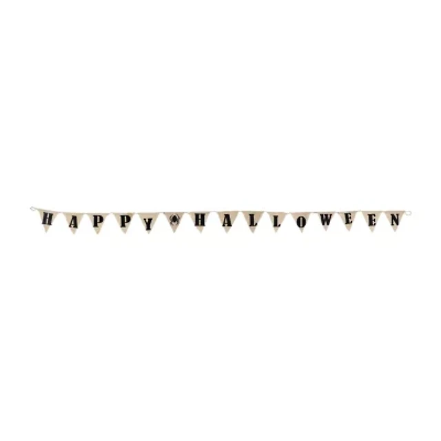 18.75" Battery Operated Led Lighted Burlap Happy Halloween Banner