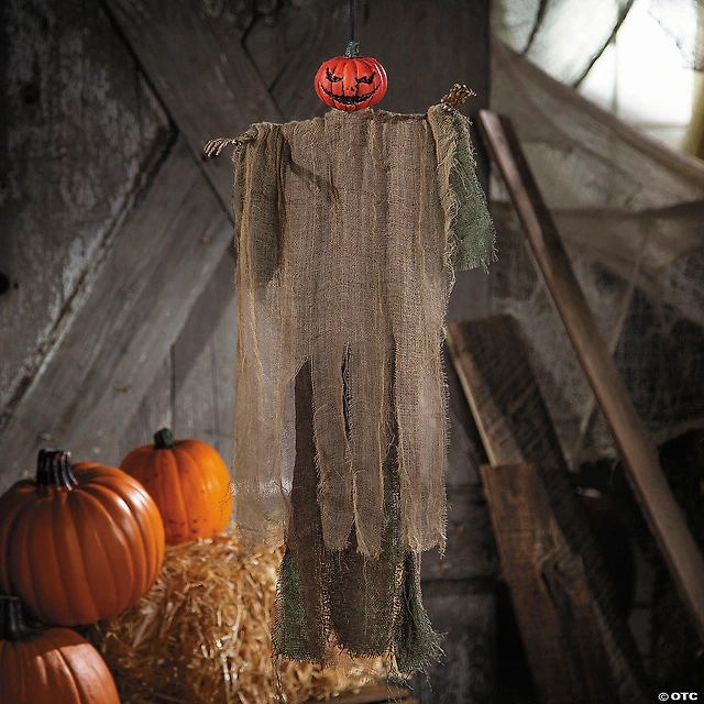 2 Ft. Hanging Pumpkinhead Man with Hat Halloween Decoration