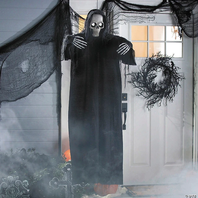 5 Ft. Animated Eyes Hanging Skeleton Reaper with Black Robe Halloween Decoration