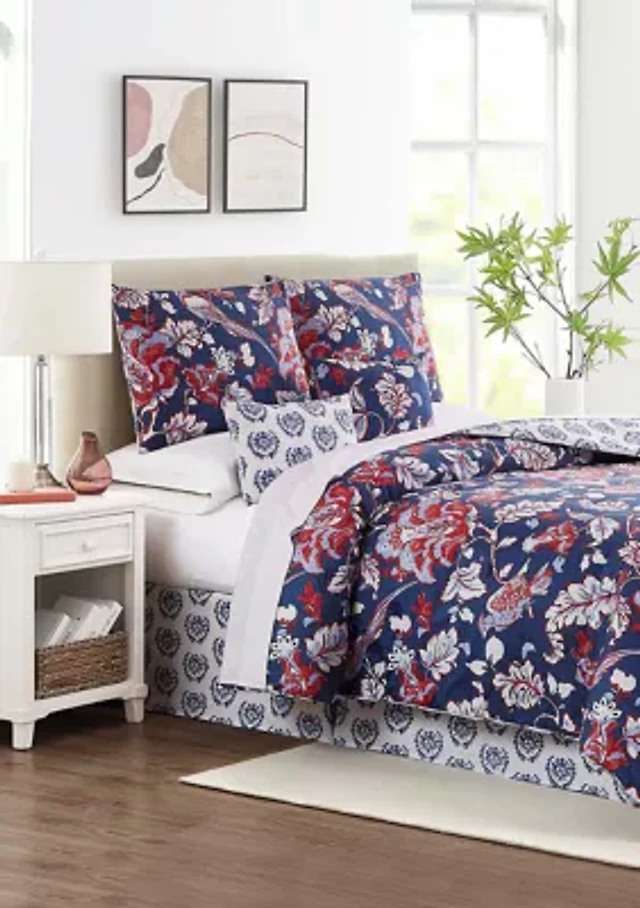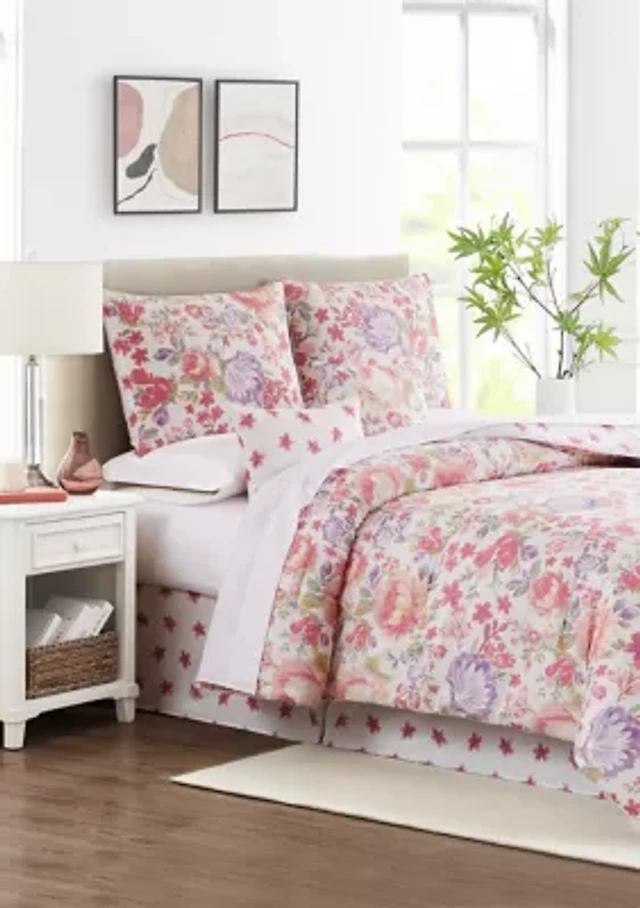 Sweet Home Collection 7 Piece Floral Stripe Bedding Set