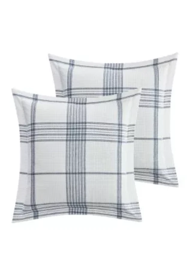 Yuletide Euro Sham Set of Two Quilted Plaid - Red, Green, Cream - Cotton