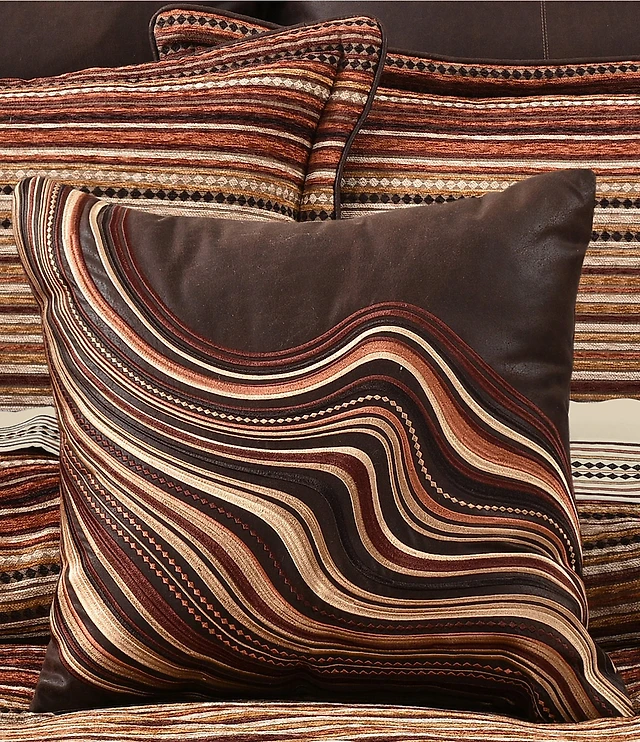 J. Queen New York Sundance Wavy Embroidered Striped Square Embellished Decorative Throw Pillow