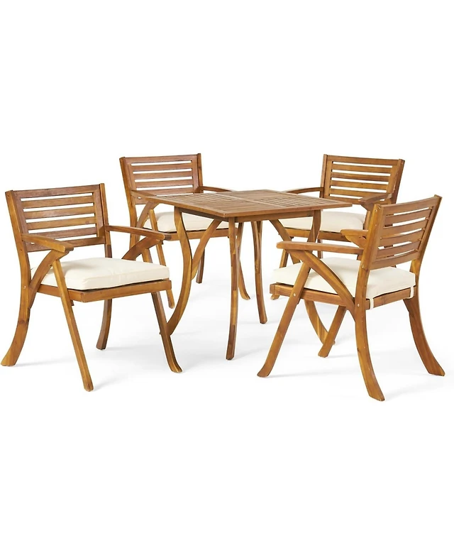 Flynama 4 Piece Acacia Wood Outdoor Chat Set Water Resistant Cream Gray Cushions Heavy Duty Frame for Patio Garden Leisure