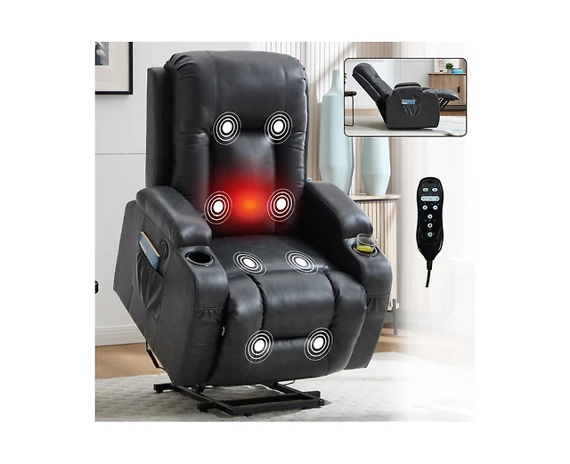 Streamdale Furniture Streamdale Power Lift Recliner Chair, 350 Lbs Capacity, 8-Point Massage, Heating, Usb/Type-c, Khaki