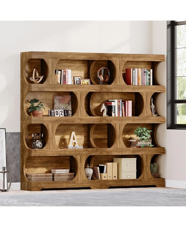 sumyeg 70.87" H Display Storage Cabinet with 4-Tier Shelves and 3 Side Drawers, Modern Wooden Tall Bookshelf for Home