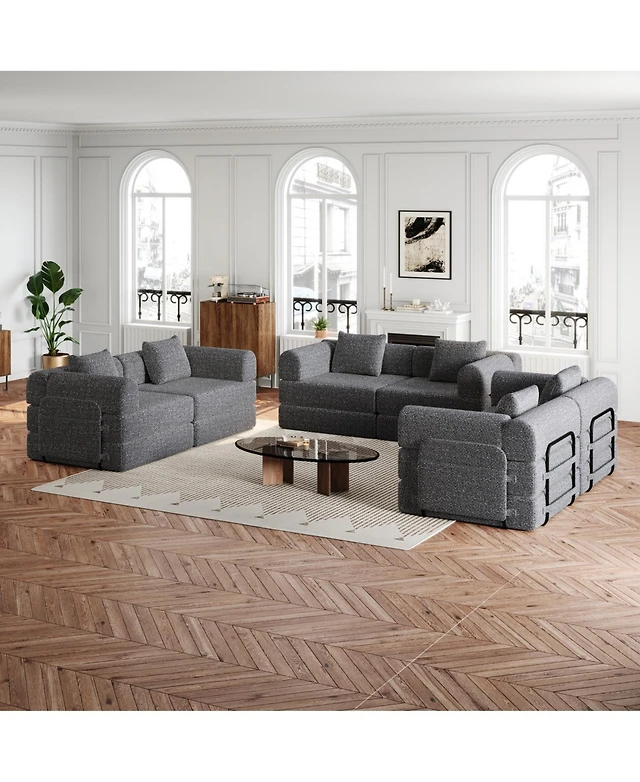 Streamdale Furniture Modern Chenille Sectional Sofa with 8 Pillows, Diy Combination, Grey