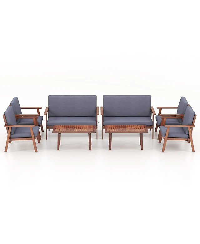 Pcs Patio Conversation Set Acacia Wood Sofa Coffee Table with Cushioned Seat