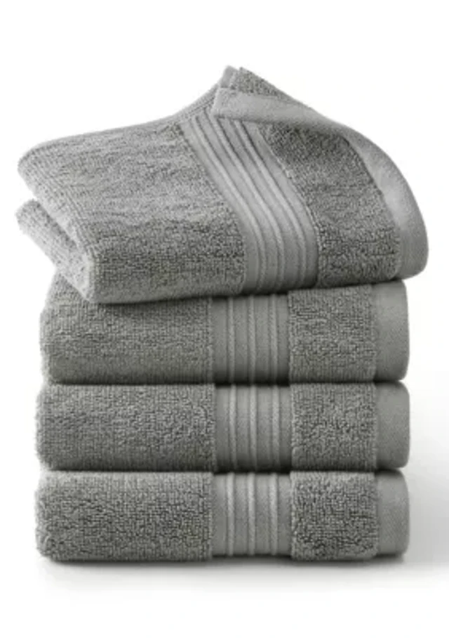 TOWN & COUNTRY LIVING 4-Piece Textured Windowpane Grey Washcloth Set