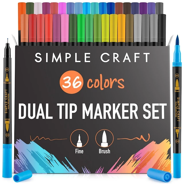 Zulay Kitchen 36 Colored Dual Tip Brush Pens - Fine & Brush Tip Dual Brush Markers