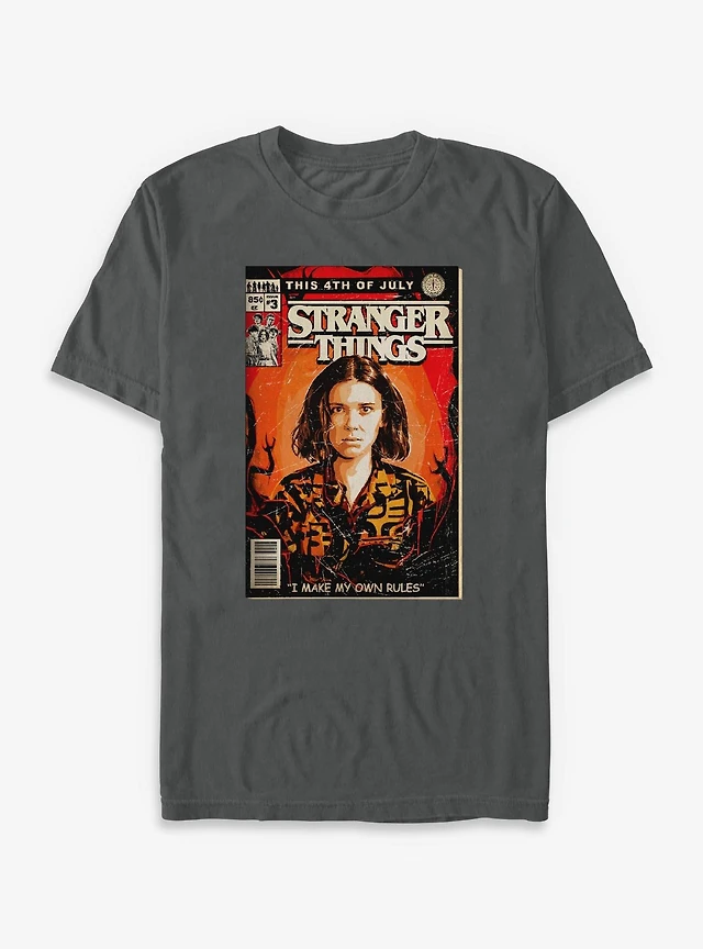 Stranger Things 4th Of July Comic Book Cover Garment Dye T-Shirt