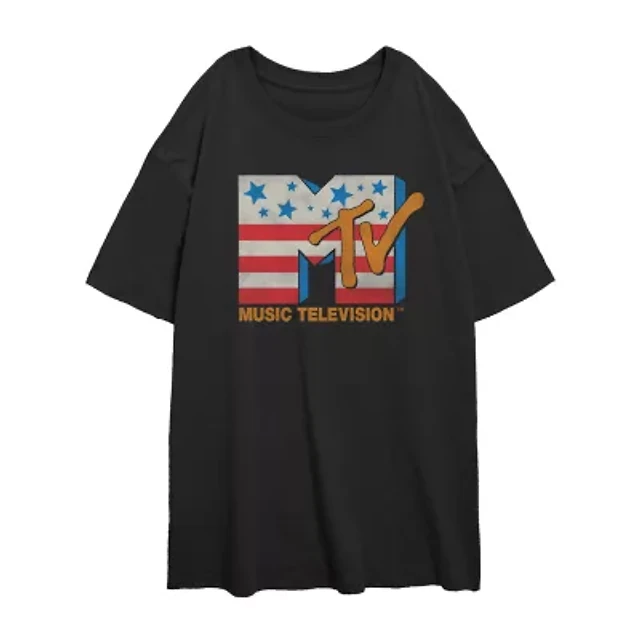 Mtv Stars And Stripes Tee Womens Juniors Crew Neck Short Sleeve Regular Fit Graphic T-Shirt