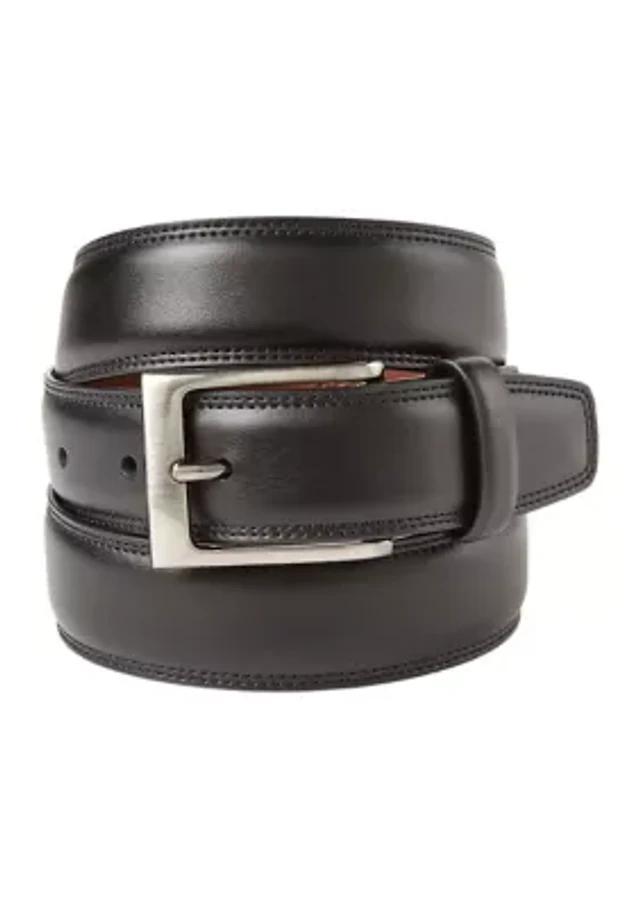 Men's 35 Millimeter Brushed Nickel Buckle Feathered Edge Double Leather Keeper Belt