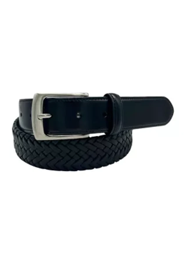 Men's 35 Millimeter Brushed Nickel Finish Buckle Basketweave Embossed Italian Leather Belt