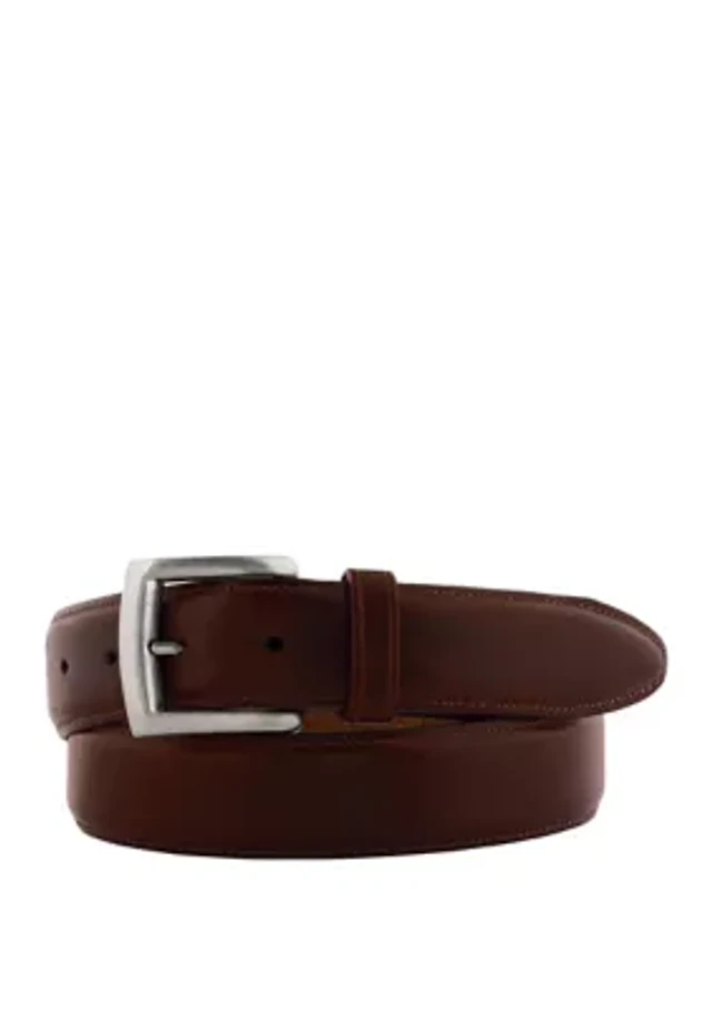 Men's 35 Millimeter Perfed Edge Smooth Leather Belt with Polished Nickel Buckle