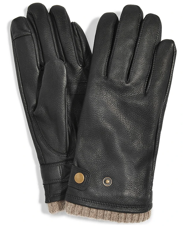 Tommy Hilfiger Men's Double Layer Cuff Leather Gloves