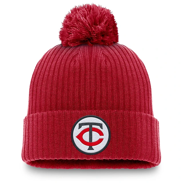 Men's Nike Red Minnesota Twins Cooperstown Collection Patch Cuffed Knit Hat with Pom