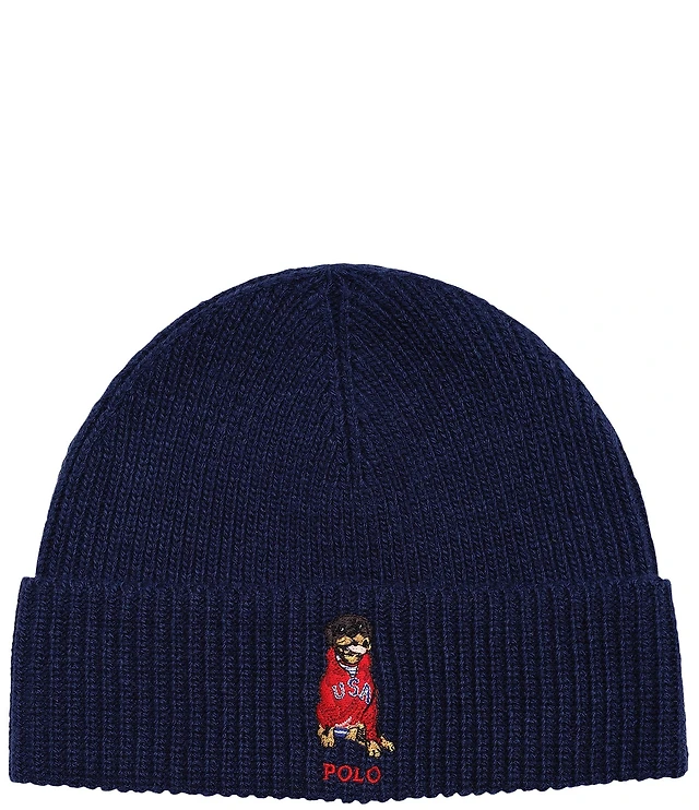 Polo Ralph Lauren Golden Retriever Embroidered Ribbed Knit Wool Blend Beanie