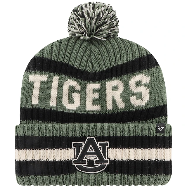 Men's '47 Green Auburn Tigers OHT Military Appreciation Bering Cuffed Knit Hat with Pom