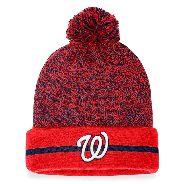 Men's Fanatics Red/Navy Washington Nationals Space-Dye Cuffed Knit Hat with Pom
