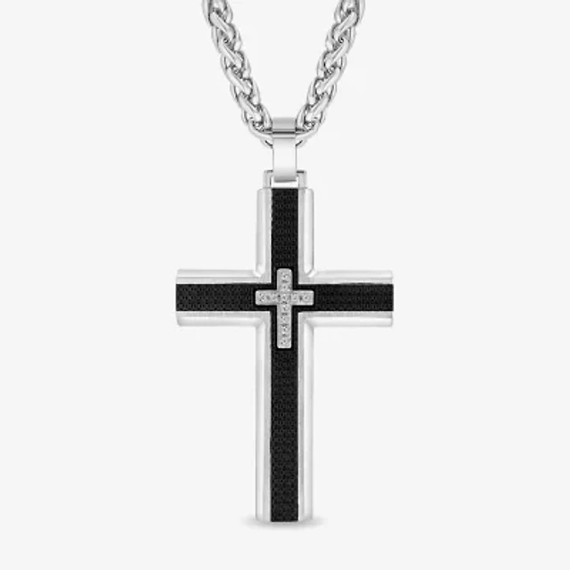 Mens Stainless Steel Black & Blue IP Cross Pendant Necklace