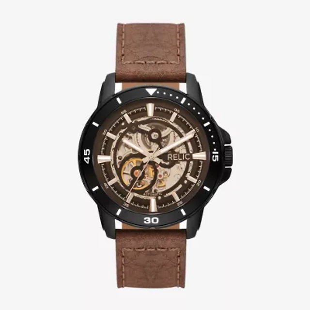 Relic By Fossil Mens Automatic Brown Leather Strap Watch Zr12663